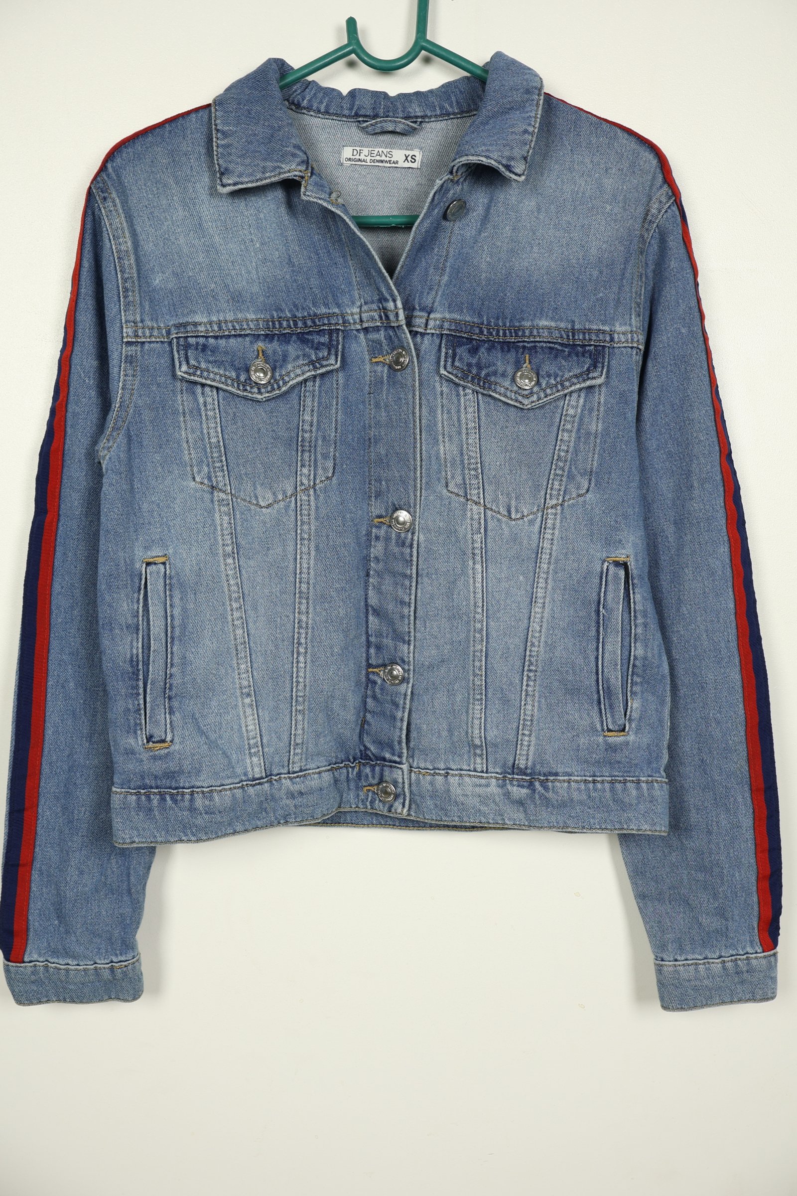 DF Jeans Light Wash Denim With Red & Navy Arm stripes