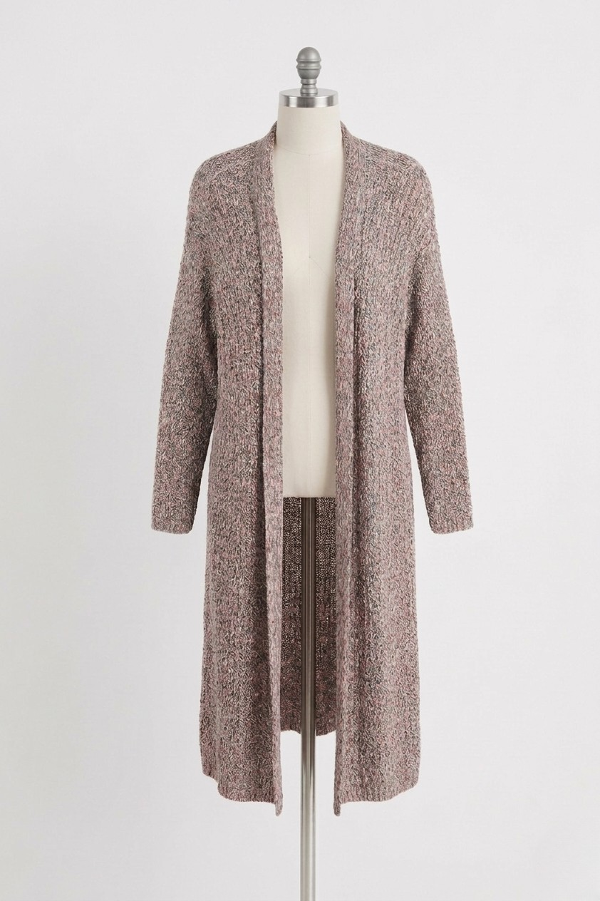 Long knitted open-front cardigan